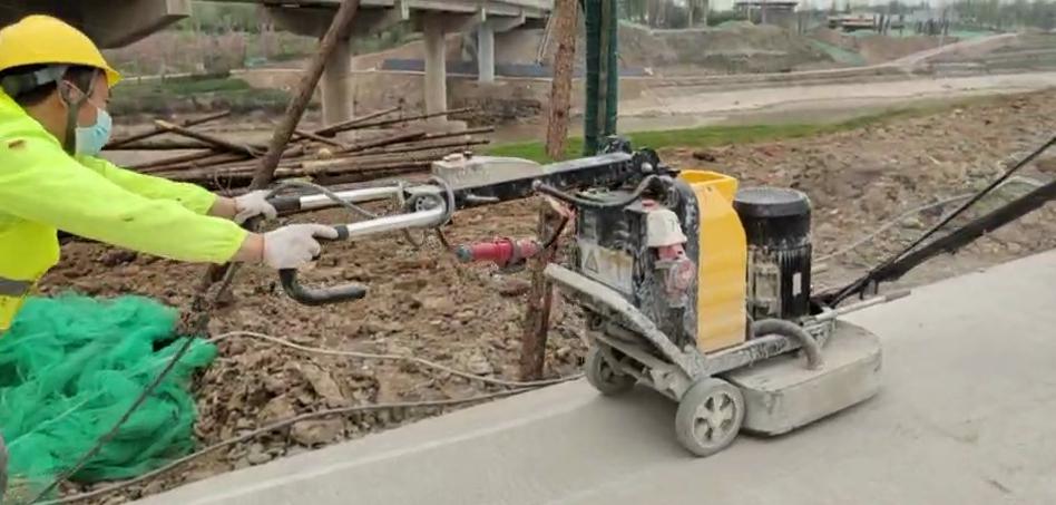 1、 用打磨机打磨地面,用钢丝刷打磨路边沿;