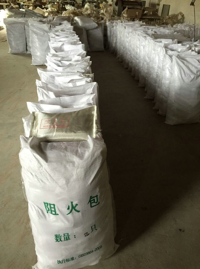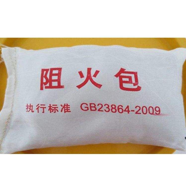 DB-A3-CD01型阻火包是根据GB23864-2008(防火封堵材料)标准研制成功的防火配套耐火材料,DB-A3-CD01型阻火包形状如小枕头,外层由经过处理的玻璃纤维布制成,内部填充由无机不燃材料和特种添加剂组成的混合物。该产品无毒、无味、无腐蚀,耐水、耐油、耐湿热性、耐冻融循环性、膨胀特性好,施工简便,可随意拆装和反复使用,阻包遇火膨胀,形成严密的封堵层,达到阻火、隔热,有效地将火灾控制在局部范围之内,当封堵厚度达到200mm时,耐火极限可达到180min以上。