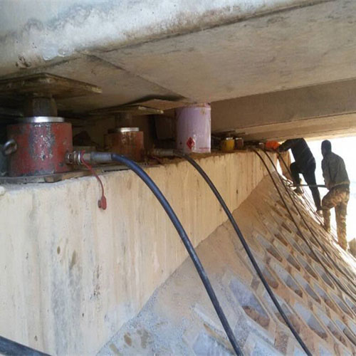 1.扁型千斤顶法:把超薄的液压千斤顶安放在主梁与盖梁的狭小的空间内,直接顶升梁体,利用百分表观测梁体上升的速度,以保证桥跨各梁体受力均匀同步提升。该方法是目前使用较广泛的顶升方法。
