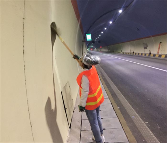 6、湿润:用干净的水充分湿润清理好的待修补区,但修补前不得有明水,若有明水,用海绵或拖把将水清理出来。
