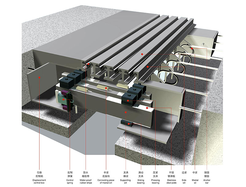 作为传输冲击荷载的横梁与主位移方向平行,这种设计可免除其承受其它的附加载荷;独立的位移控制系统具有更优异的柔性和适应性,若单组间隙被阻止不能收缩,其它组缝不受影响仍可继续使用。