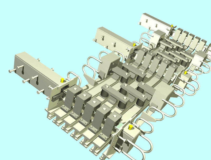 模数式伸缩装置整体结构基于抗疲劳设计原理,所有承受冲击荷载的部件都是采用高强螺栓联接,并设有防松装置,避免了焊接应力引起的疲劳破坏;并有利于后期维修保养及零部件更换。预压的弹性支承在任何情况下对车辆冲击荷载都能起到有效的缓冲和阻尼作用,并有效保护伸缩装置周围结构和支撑横梁,使所有部件的寿命将大大延长。