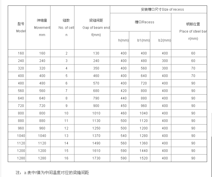 标准代号—GQF为交通行业标准规定的伸缩装置代号